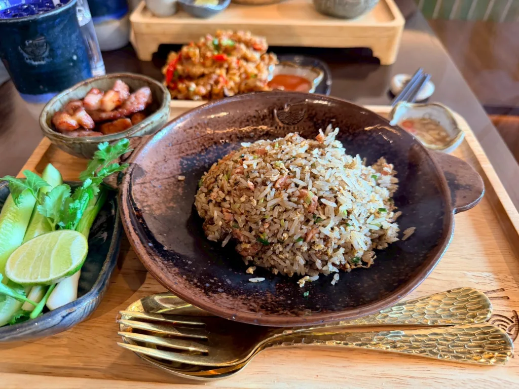 ข้าวผัดแหนม – เมนูโชว์ประจำร้าน! จากข้าวผัดบ้านๆ กลายเป็นเมนูจานเด็ดสุดฮอต เซฟจะยกกระทะร้อนมาเสิร์ฟถึงโต๊ะ! กลิ่นหอมเตะจมูกตั้งแต่ยังไม่ทันตัก