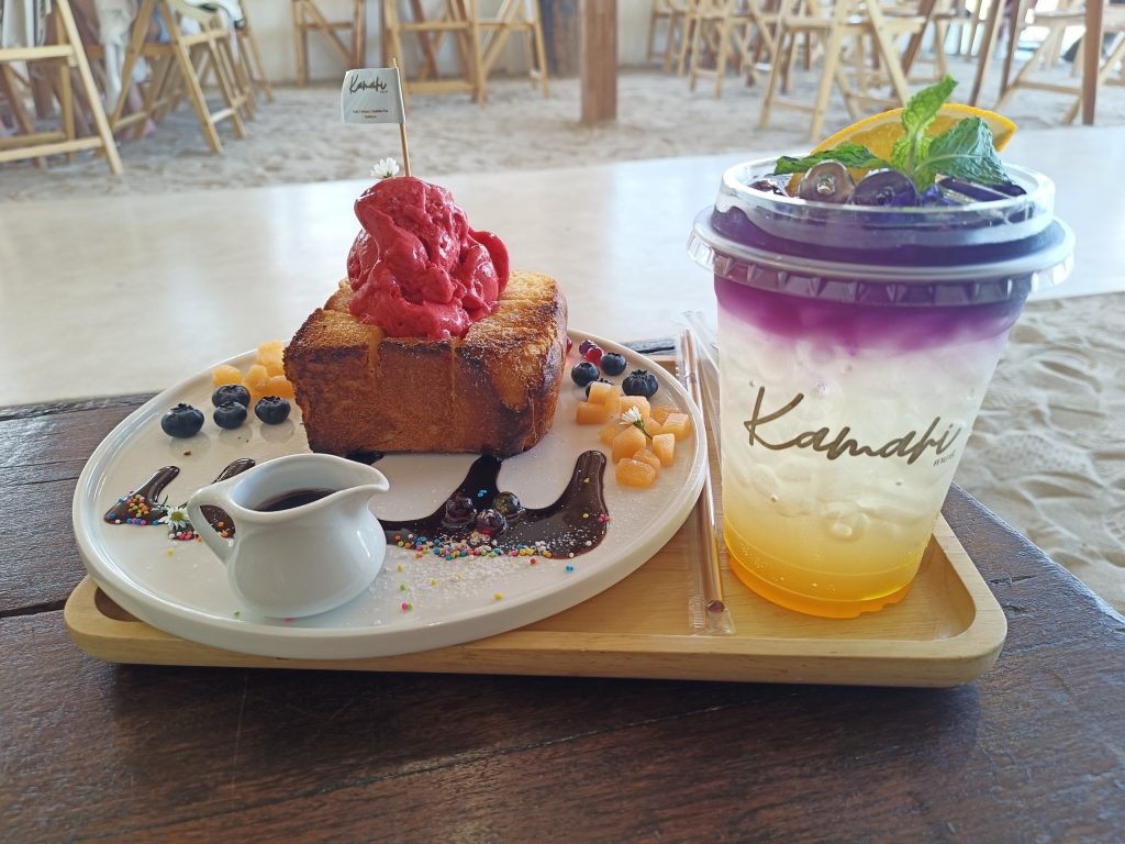 คาเฟ่จะอยู่ระหว่างทางไปหาดตายาย แนะนำให้แวะพักกินไอศครีม เครื่องดื่มเย็นสดชื่นกันก่อน